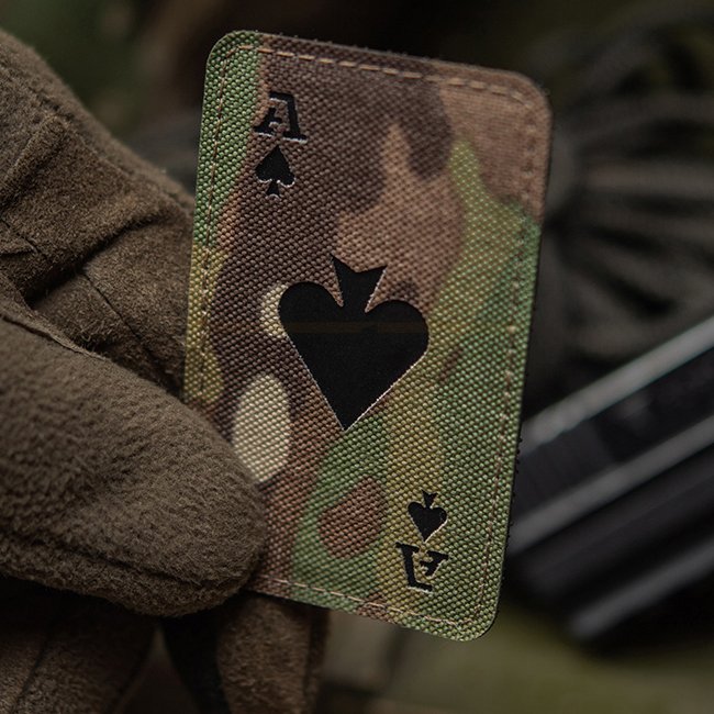 M-Tac Ace of Spades Laser Cut Patch - Multicam, dimensions 80x50mm, made of Cordura 500D Nylon with hook surface.