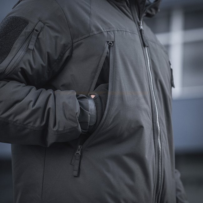 M-Tac Alpha Pro Winter Jacket Gen.III - Black - L - Regular. Designed for extreme weather conditions, this jacket offers optimal protection and high wearing comfort. Ideal for military, security forces, and outdoor enthusiasts. Wind and water-repellent ma