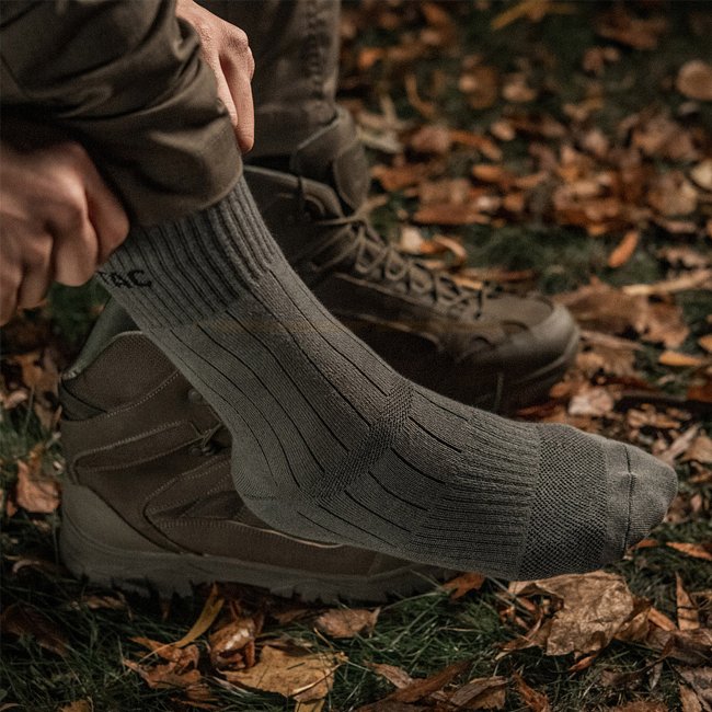 M-Tac Army Tactical Socks made of 78% cotton, 17% polyamide, and 5% elastane. Lightweight at only 50g. Designed in olive color for size 43-45.