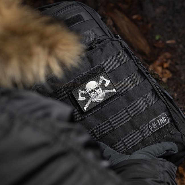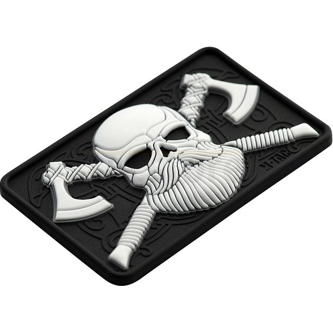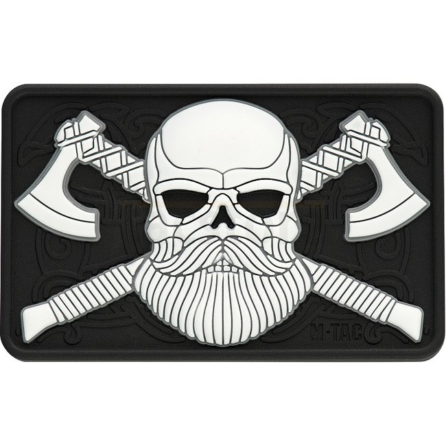 M-Tac Bearded Skull 3D Rubber Patch - White. Front: Rubber, Back: Hook surface. Dimensions: 80 x 50mm.