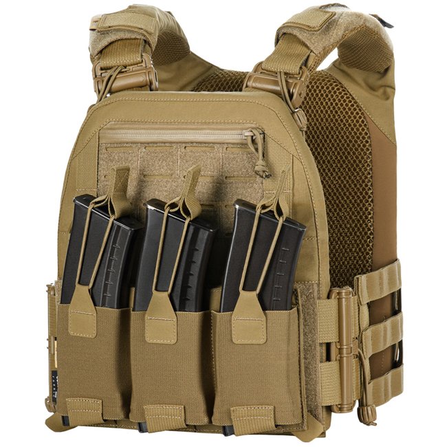 The plate carrier has a waterproof YKK Aqua-Guard zipper, an administrative front panel and several MOLLE attachment options to integrate additional accessories. The ergonomic shoulder straps and the breathable interior ensure high wearing comfort, even during long missions.