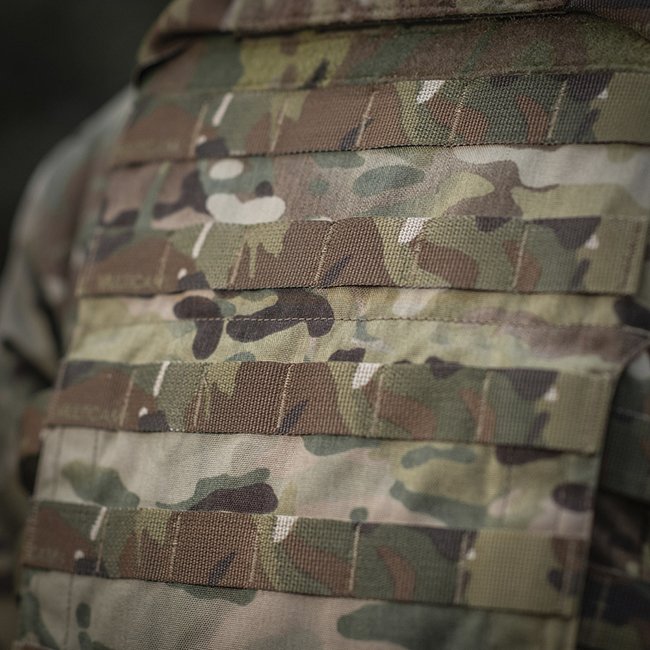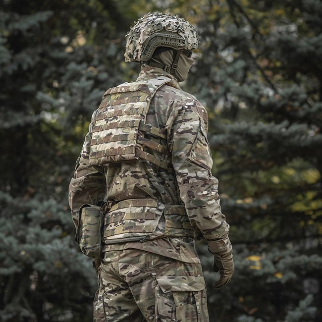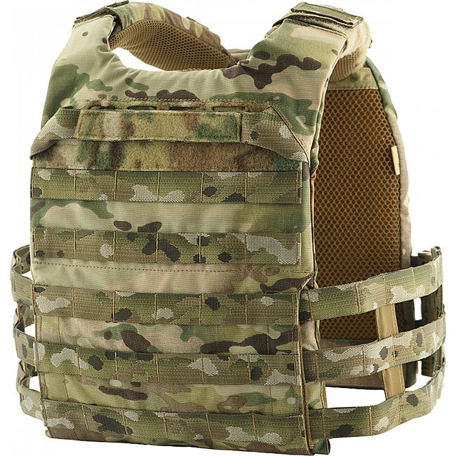 The M-Tac Cuirass Plate Carrier QRS in Multicam offers a revolutionary design with quick release system, modular pouches, and skeletonized cummerbund. Made from durable Cordura 500D material.
