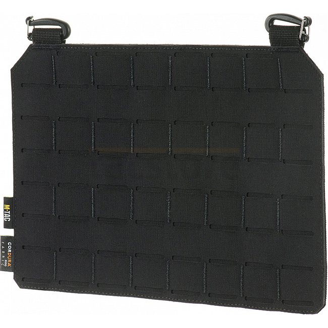 M-Tac Cuirass QRS Plate Carrier Front Panel XL - Black. Made of Cordura 500D. Attaches to XL plate carrier with Woojin hooks and Velcro. Holds up to four magazine pouches.
