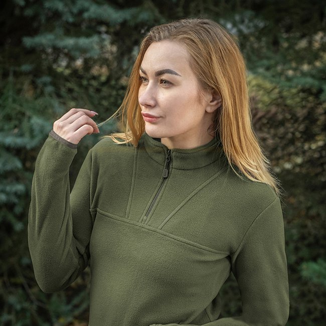 Stay warm this winter with the M-Tac Delta Polartec Fleece Jacket Lady in Army Olive color. Perfect for cold season with thumb holes to keep your palms warm while fingers are free.