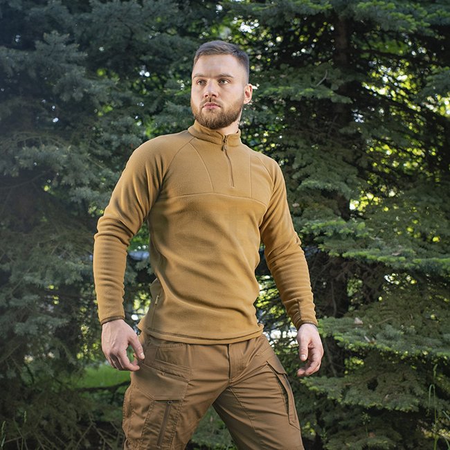 M-Tac Delta Polartec Raglan Jacket - Coyote - 2XL. Modern design, high-performance functionality. Polartec® fleece for thermal insulation and breathability in cold conditions. Raglan cut for freedom of movement. Thumb holes for extended protection. Lightw