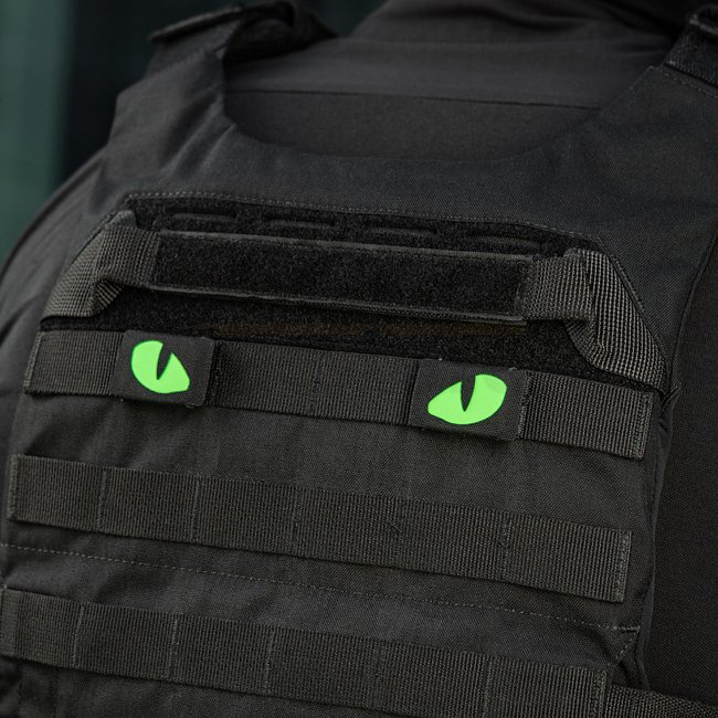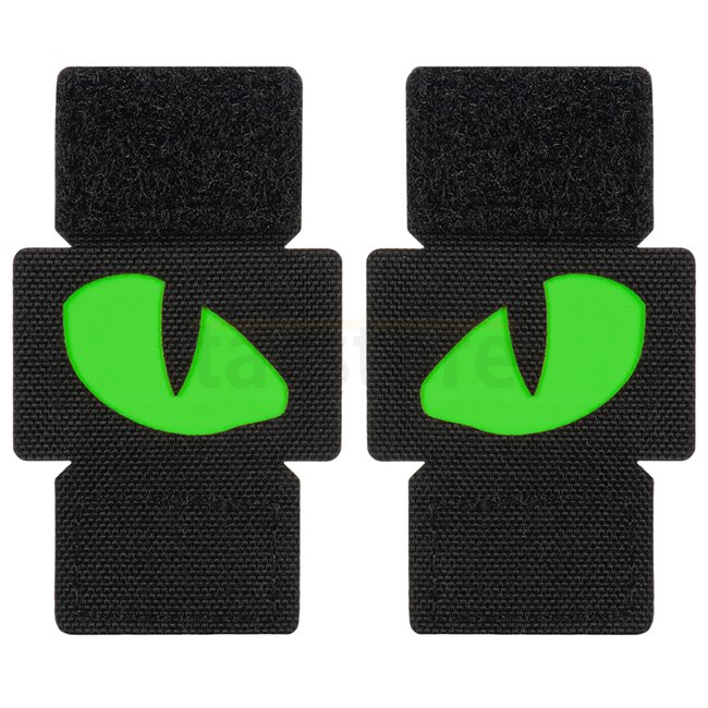 M-Tac Green Tiger Eyes Laser Cut Patch - Black. Cordura 500D front material, hook surface back material. 40 x 25 mm dimensions.