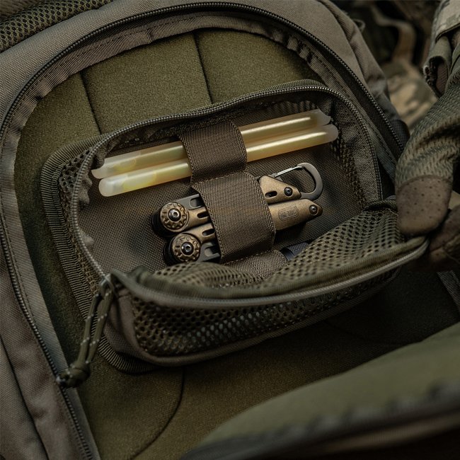 This module with a zippered mesh pocket can be attached in a bag or backpack using a Velcro or velour surface. A spacious pocket will help you organize a large number of small items without the risk of losing something important in the main compartment of your backpack or bag.