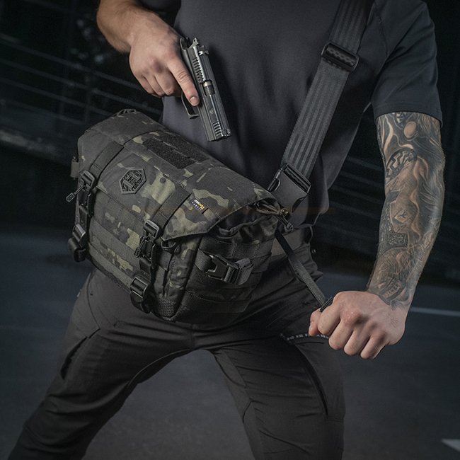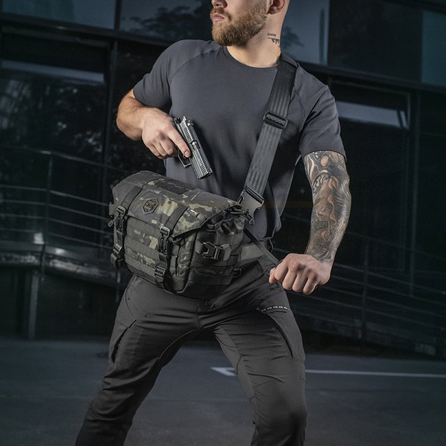The M-Tac Messenger Bag Elite Hex in Multicam Black offers a stylish look and broad functionality. Made of durable Cordura Hex material, this bag features YKK zippers and a concealed carry compartment. With a volume of 12 liters and external MOLLE surface