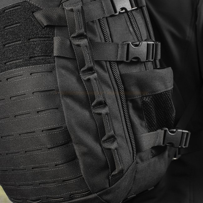 • MOLLE system: The backpack is equipped with a MOLLE laser-cut system that allows you to easily attach additional bags or accessories and customize the backpack to your needs.