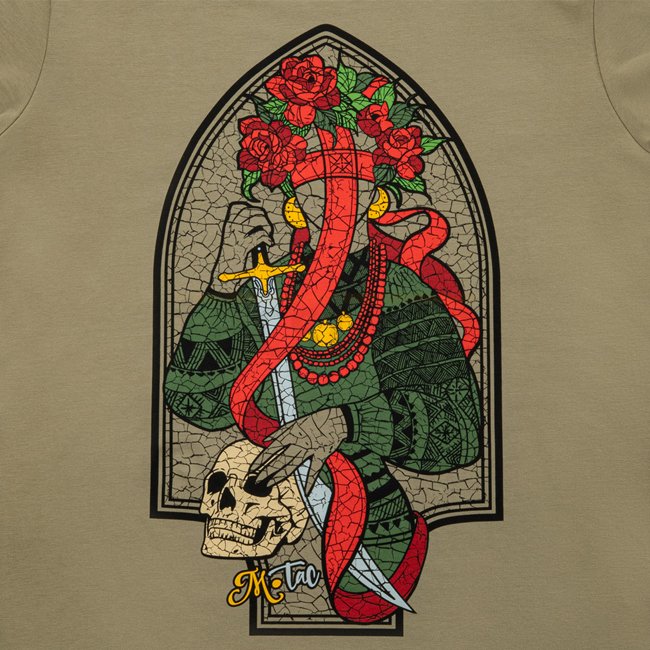 M-Tac Motanka T-shirt in Tan, size S. Material: 93% cotton, 7% elastane. Lightweight at 190g.
