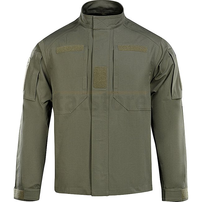 The M-Tac Patrol Flex Jacket in Army Olive XL Regular has a comfortable, slightly fitted cut with stand-up collar, central zipper, and cover. Features hidden chest pockets, velcro panels, and embroidered grommets for ventilation. Reinforced yoke, expansio