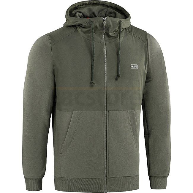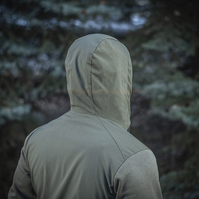 M-Tac Pilgrim Jacket in Army Olive color, size 2XL Regular. Stylish and practical for urban or sport-style. Made of innovative nylon/elastane blend and comfortable cotton base. Features central zipper, spacious pockets, ribbed cuffs, and a comfortable hoo