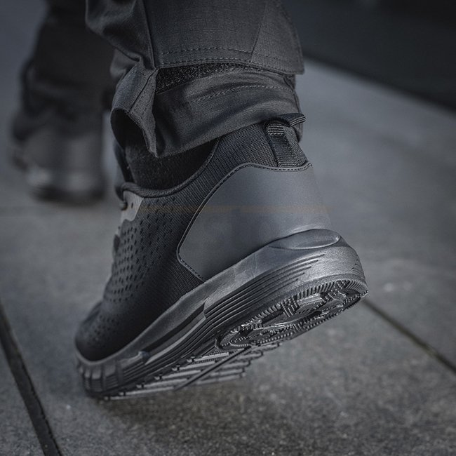 M-Tac Pro Summer Sneakers in Black - Size 46. Made of high-quality synthetic materials, these sneakers are breathable, wear-resistant, and durable. Effective cushioning and shock protection. Rubberized toe and heel for increased protection and durability.