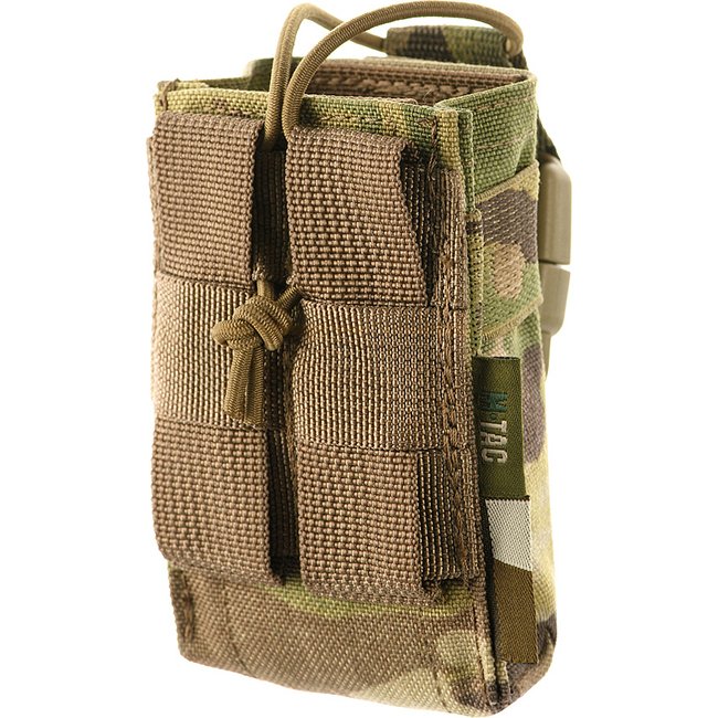 M-Tac Radio Pouch Gen.III in Multicam made of durable Cordura 1000D, designed for easy access to radio controls. Compatible with Kenwood K2AT, K4AT, TH-F5, and more. Dimensions: 10.5 x 6.5 x 3.5 cm.