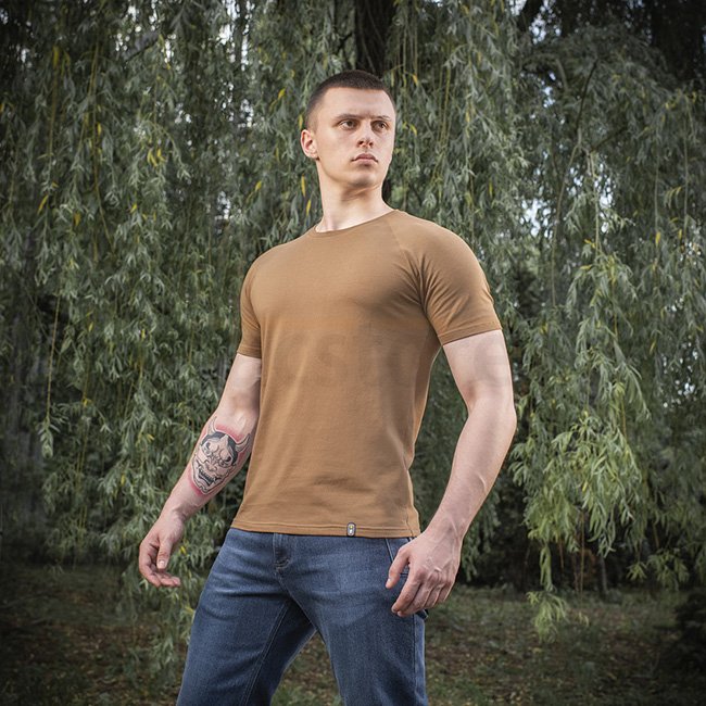 The M-Tac Raglan T-Shirt 93/7 in Coyote color and size L is a comfortable and versatile option for everyday wear, with a special raglan sleeve cut for added comfort.