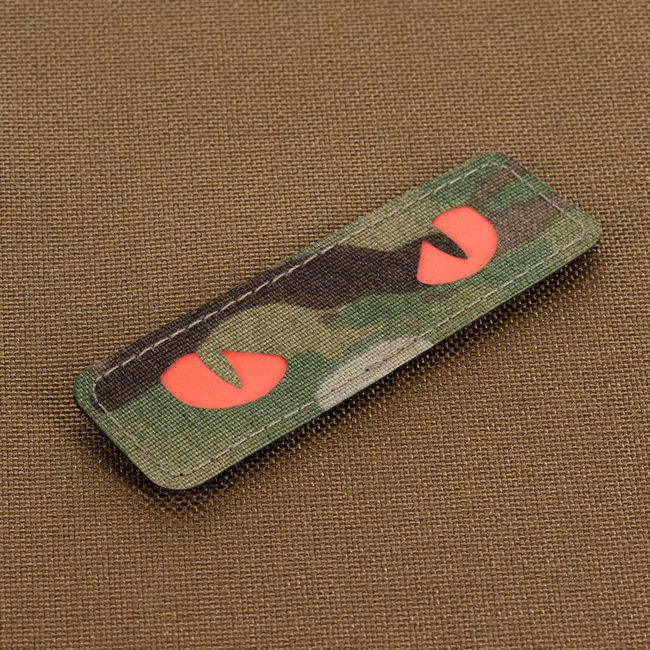 M-Tac Red Cat Eyes Laser Cut Patch in Multicam featuring Cordura 500D front and hook surface back. Dimensions: 80 x 25 mm.