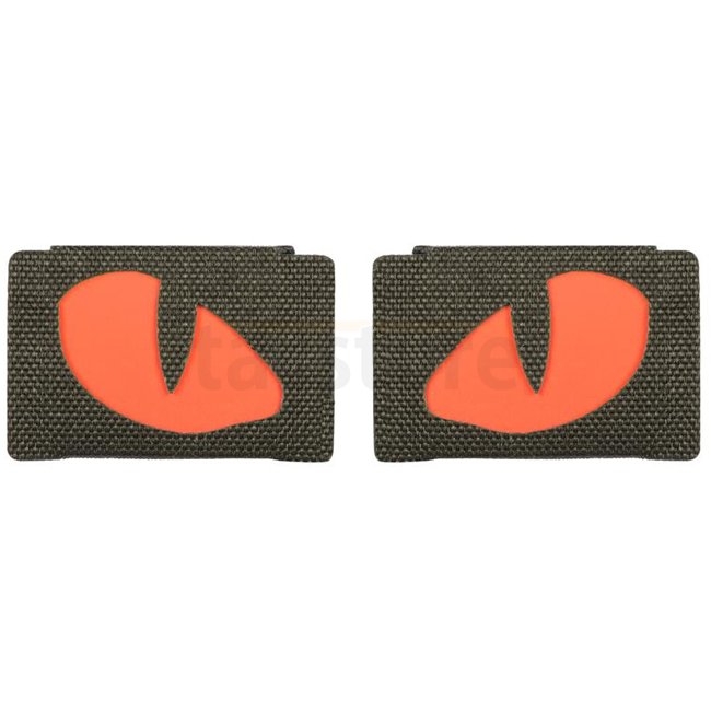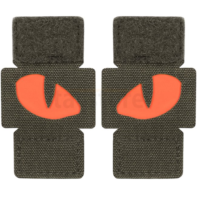 M-Tac Red Tiger Eyes Laser Cut Patch in Ranger Green, made from Cordura 500D on the front and featuring hook surface on the back. Dimensions are 40 x 25 mm.