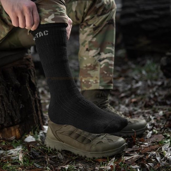 M-Tac Winter Wool Socks in Black are made from a blend of Merino wool, acrylic, polyamide, and elastane. Weighing only 40g, these socks are perfect for keeping your feet warm and comfortable during the winter season. Size 44-46.