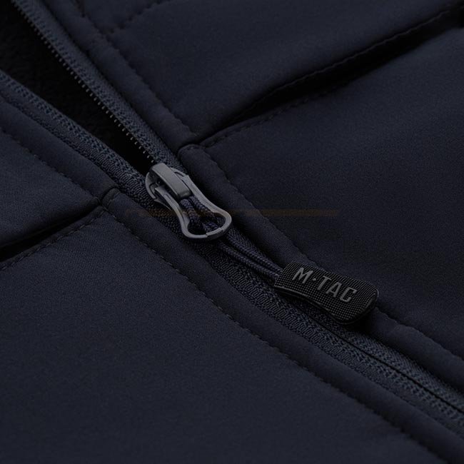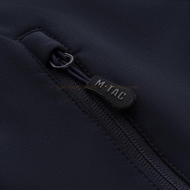 M-Tac Soft Shell Police Jacket - Navy Blue - XS: Stylish and functional soft shell jacket in navy blue, featuring polyurethane membrane to protect against bad weather, thin fleece layer for added warmth, side opening system for quick access to side arm, a