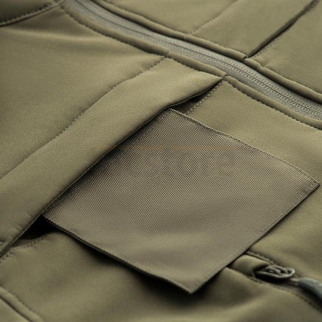 The Soft Shell Jacket is made of an interlayer polyurethane membrane that protects from bad weather. Inside, it has a thin fleece layer. It has two identification panels, which, depending on the situation, can be pulled out or remain hidden. The empty panels can be printed or emproided. A side opening system allows quick access to a side arm.