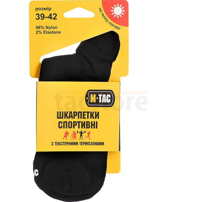 M-Tac Sport Socks - Black - 43-46: High-performance sport socks designed for running & all active pursuits. Maximum comfort, excellent ventilation. Material: 98% nylon, 2% elastane.