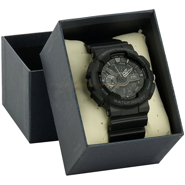 Stylish Sport Watch will add solidity to any look. The case and glass are made of durable polycarbonate and can easily withstand minor bumps and drops. The silicone strap with steel buckle looks good on the hand. This multifunctional model, which is waterproof, shows the time in 12/24 format on a modern LCD, has a stopwatch, alarm clock, automatic calendar, and a backlight, which will be very helpful in the dark. All adjustments are made using the buttons on the case. This accessory is great for lovers of outdoor activities and sporty styles.