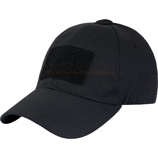 M-Tac Tactical Baseball Flex Cap Rip-Stop in Black - S/M. Six-panel cap made of rip-stop fabric with Teflon impregnation. Features adjustable Velcro strap, signature panel, and Velcro patches. Dense visor with six ventilation eyelets.