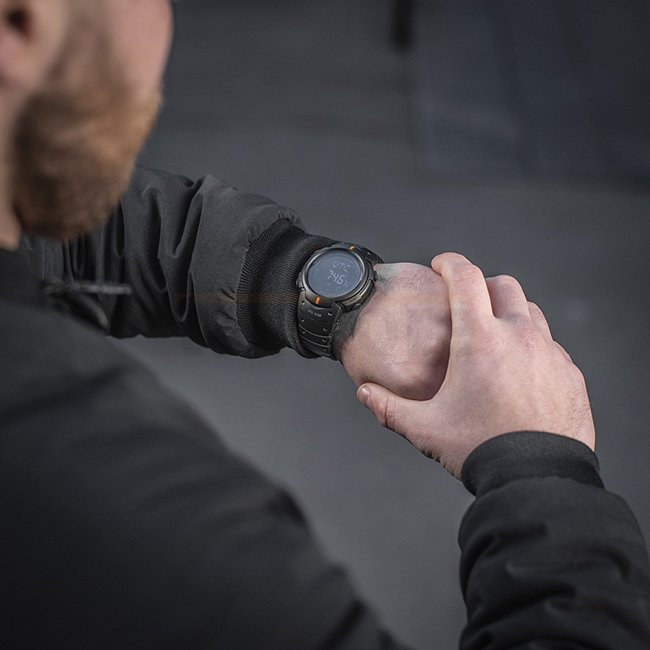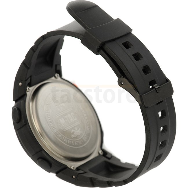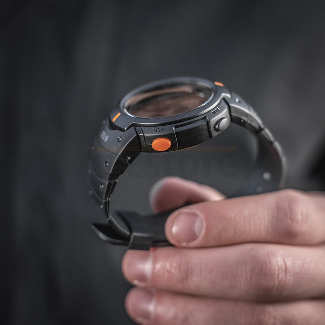 M-Tac Tactical Compass Watch - Black is a waterproof and practical watch with an electronic compass, ideal for outdoor activities like hiking or extreme sports. Equipped with a stopwatch and handy strap, it ensures accurate timekeeping and prevents users