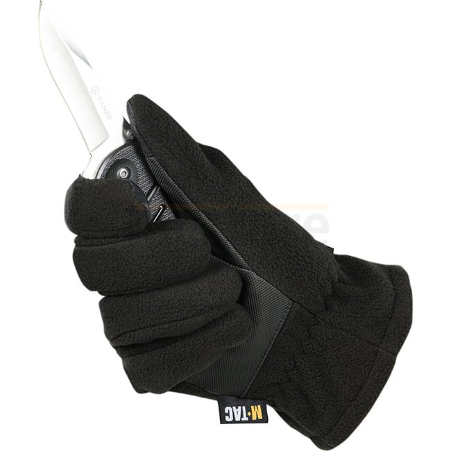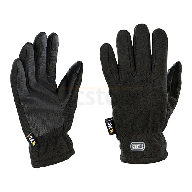 M-Tac Thinsulate Fleece Gloves - Black - M: Warm, lightweight, durable gloves with reinforced palm for improved grip. Touch screen overlay on index finger for smartphone use.