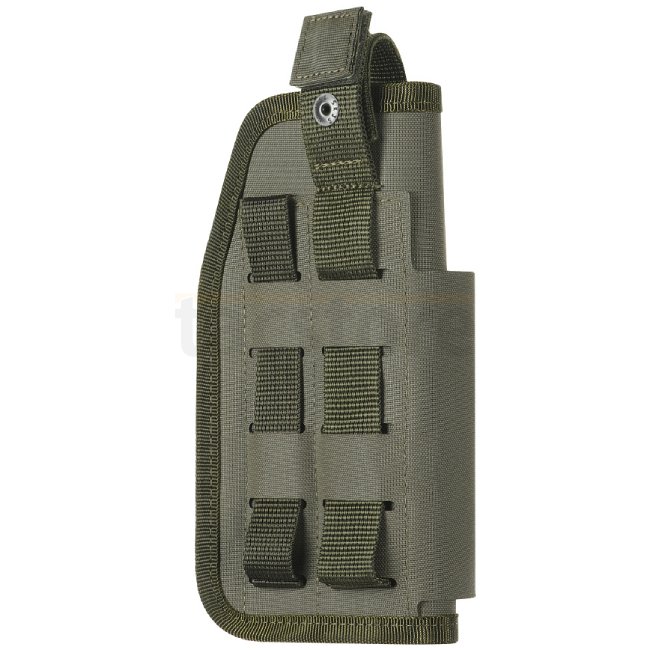 M-Tac Universal Tactical Holster Elite in Ranger Green for left-handed users. Made of durable Cordura 500D, weighing only 145 g.