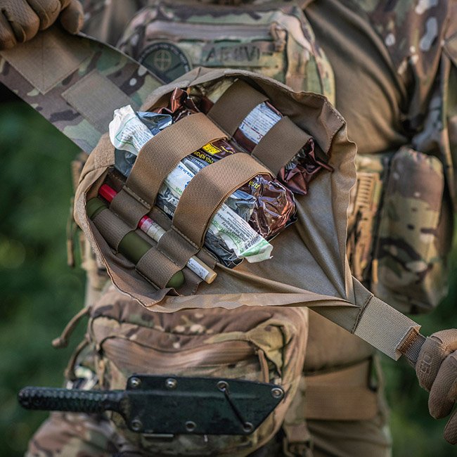 The Vertical Large Medical Pouch consists of two parts: the main pouch, and an internal first-aid kit organizer following the IFAK model (Individual First Aid Kit), with a vertical extraction method.