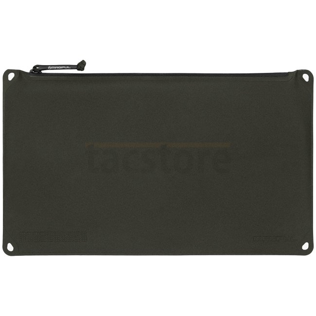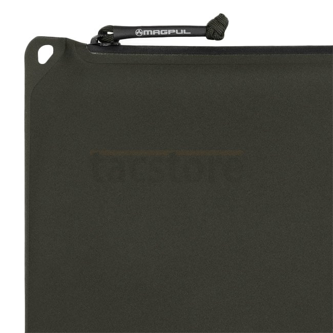 A weather-resistant, larger-sized pouch by Magpul for safeguarding small items from the elements. Fits most notebooks up to 13". Features carabiner attachment points, identification marking dot matrix, and anti-slip texture. Non-hygroscopic with YKK Aquag