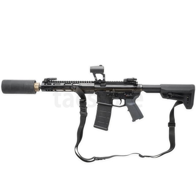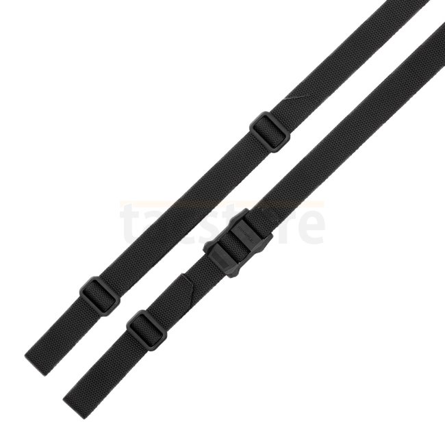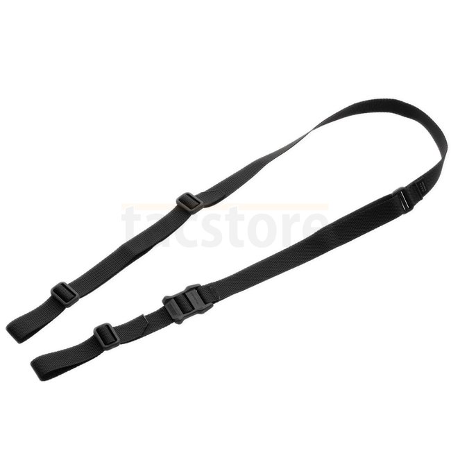 The Magpul MS1 Lite Sling - Black is a lightweight and compact two-point rifle sling designed for rapid adjustments and enhanced mobility. Ideal for various shooting scenarios, this sling features customizable anti-chafe webbing, durable hardware, quick a