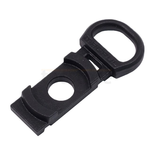 The SGA Receiver Sling Mount is a connection point for the Mossberg 500/590/590A1 SGA Shotgun Stock and one-point clip-in style attachments such as the MS3 Paraclip™, the HK® hook, ITW™ MASH hook, and others. Made from precision cast steel that is Melonite® treated for wear and corrosion resistance. Dedicated fit for the Magpul SGA Stock, the Receiver Sling Mount can be installed on either the left or right side of the front of the stock.