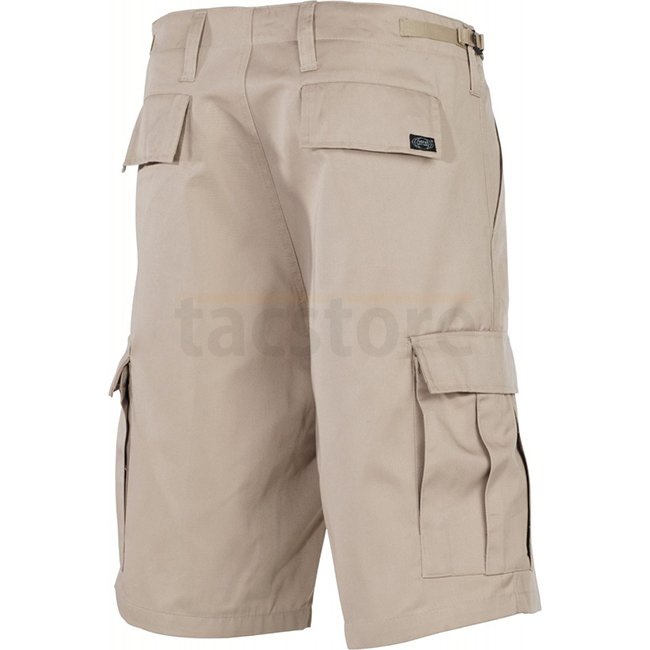 MFH BW Bermuda Shorts Side Pockets - Khaki - 3XL. Front zip, 2 pants pockets, 2 hip pockets with flap and buttons, 2 leg pockets with flap and buttons, adjustable waistband. 65% Polyester, 35% Cotton.
