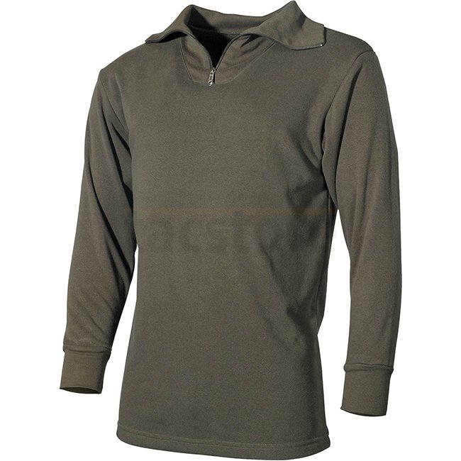 MFH BW Plush Tricot Shirt in Olive - 100% Cotton with zip collar and knit hems.