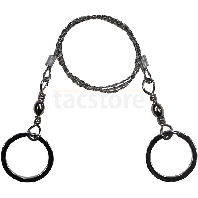 MFH Wire Saw: 8-times wound wire saw with metal rings and rotary links - 1.5mm wire diameter, 25mm ring diameter, 60cm total length, 51cm cutting length, 20g weight.