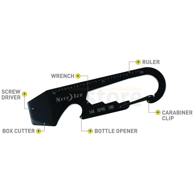 Keep this five-in-one multi tool conveniently clipped to your key chain for those save-the-day moments. Integrated into the stainless steel body are a box cutter, flathead screwdriver, wrenches, rulers, and an always-handy bottle opener. Lightweight, durable, and airport friendly, you'll always be prepared with a DoohicKey in your pocket.