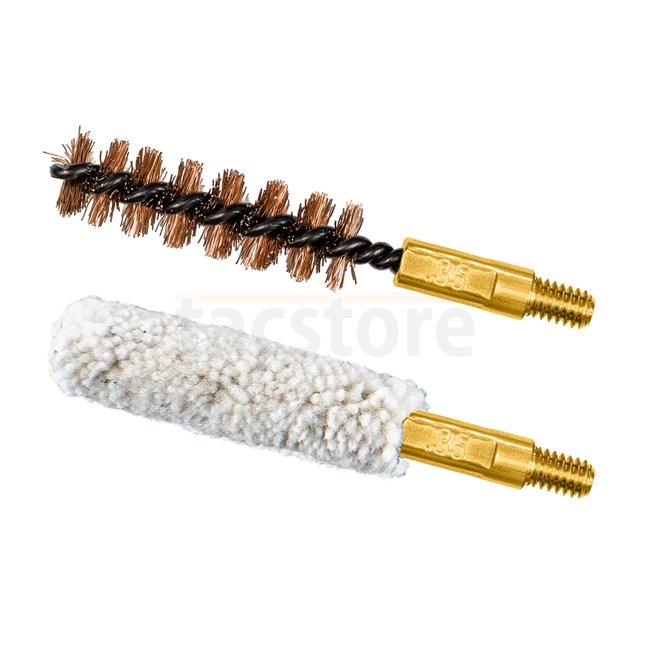 The Otis 338-357cal Brush/Mop Combo Pack features 1x Bronze Brush & 1x Cotton Bore Mop. Cleans .338cal, .35cal, 350 Legend, 357cal. Length: 5cm. Thread: 8-32.