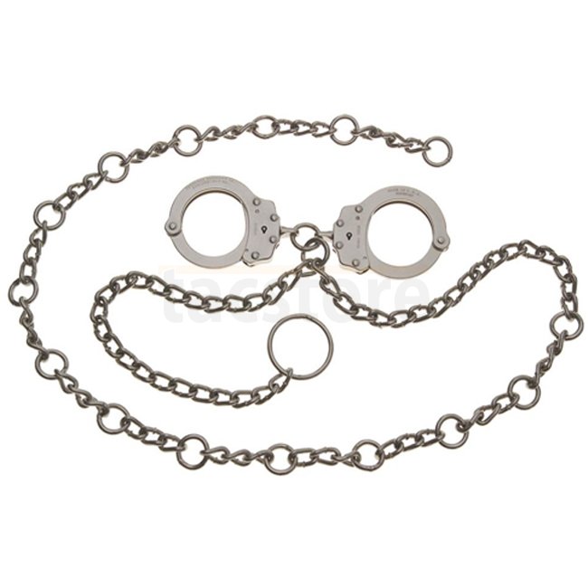 The Model 7003C Waist Chain is designed for high security transportation, courtroom and processing situations. The Model 7003C Waist Chain has a set of Model 700C Chain Link Handcuffs positioned at the navel allowing for limited use of the hands. The special heat treated steel chain and padlock rings assure adjustment up to 137cm waist. Lifetime warranty for manufacturer defect. Two keys supplied. Made in USA.