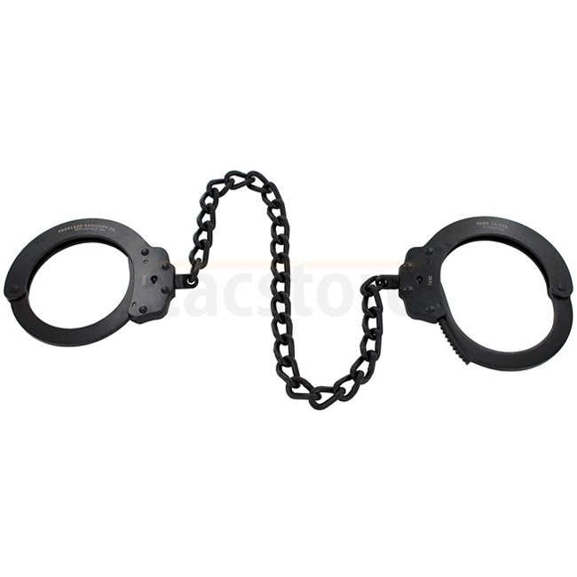 The Peerless standard size Leg Iron now redesigned to be stronger and more tamper resistant. Features include all steel construction, spun rivets, 21 locking positions and push pin double lock capability. The 38cm chain effectively limits range of motion. The Model 703C is made to meet or exceed the National Institute of Justice standards for workmanship, mechanical strength, tamper resistance and corrosion resistance. Two keys supplied. Made in USA.