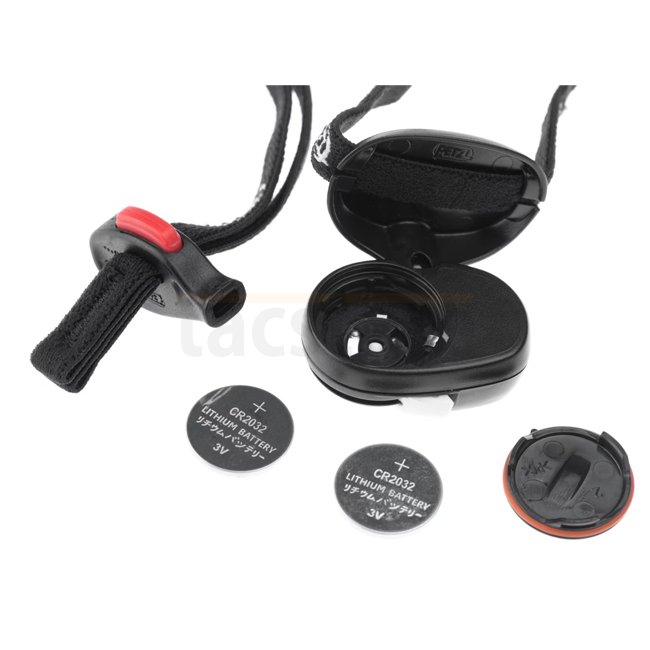 Petzl e+LITEĀ® - Ultra-compact headlamp delivering 40 lumens with white and red light modes, waterproof, includes CR 2032 batteries and integrated whistle.