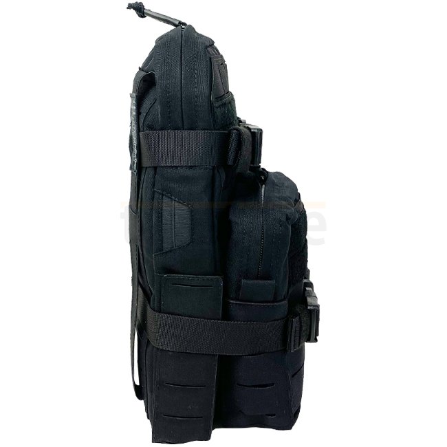The Compact Hydration Pack on steroids: Paired with a Vertical Utility Pouch Medium and compression straps, the slim hydration pouch mutates into a complete Mini Assault Pack that fits perfectly on your plate carrier.