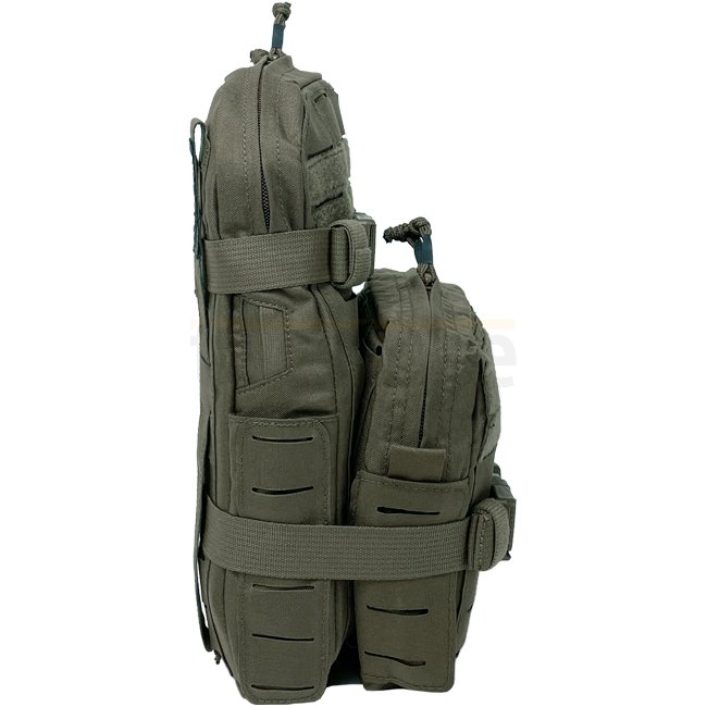 The Compact Hydration Pack on steroids: Paired with a Vertical Utility Pouch Medium and compression straps, the slim hydration pouch mutates into a complete Mini Assault Pack that fits perfectly on your plate carrier.