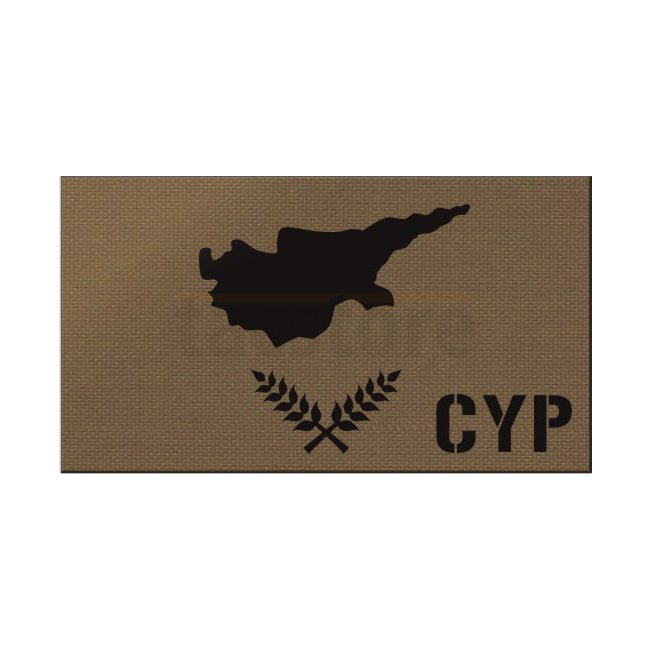 High-quality Pitchfork Cyprus IR Print Patch in Coyote color. Features front made of IR foil with a printed design, and back with a hook surface. Dimensions of 90 x 50 mm.