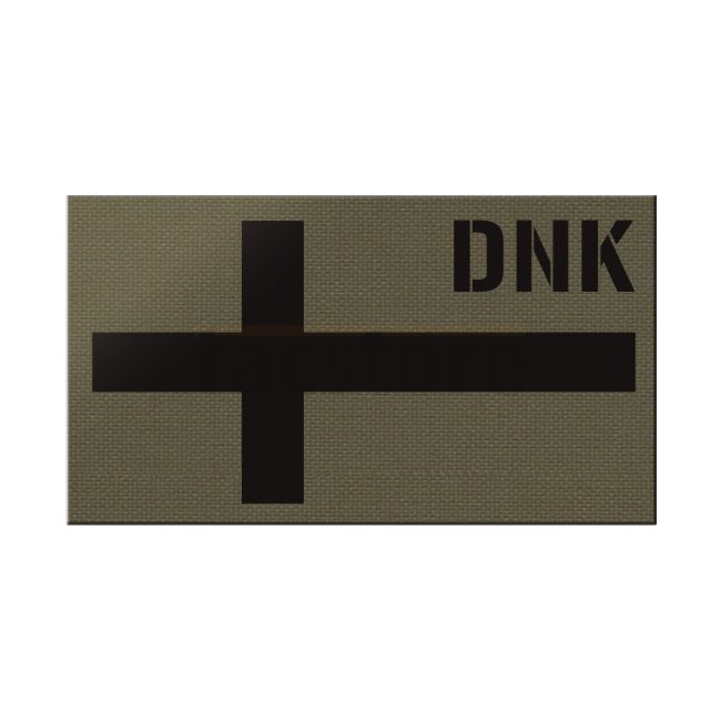 Pitchfork Denmark IR Print Patch - Ranger Green. Front: IR foil, printed. Back: Hook surface. Dimensions: 90x50mm.