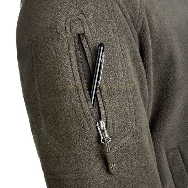 The jacket can be worn on its own or as an insulation layer under a water- / windproof outer cover. Thanks to the heavy double fleece material and the spacious cut, it keeps the wearer comfortably warm at all times. The two hook & loop surfaces on the upper arms have a vertical separation, which helps that the loop material can ergonomically wrap around the upper arm.