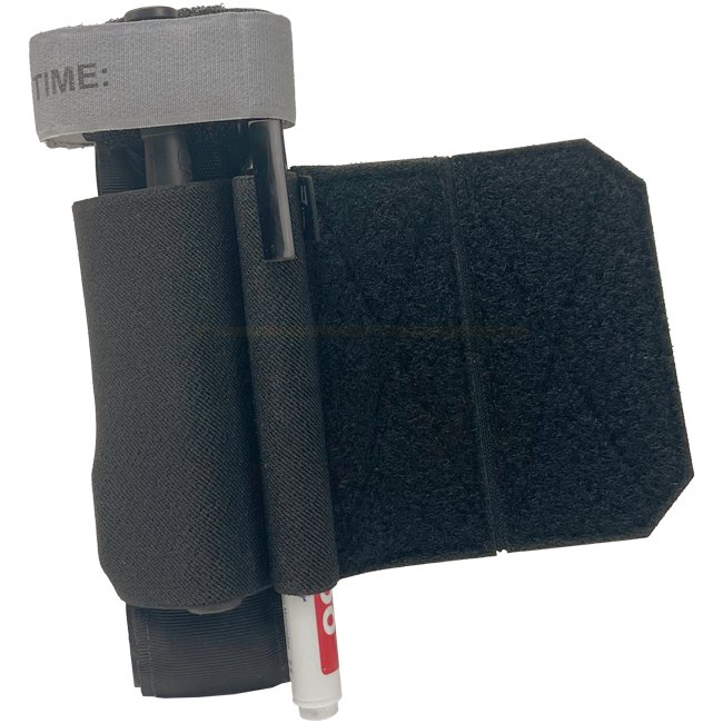 Pitchfork Hook & Loop TQ Insert 2.0 - Black - Attach to any hook & loop surface. Securely holds tourniquet designs. Features pen holder and cutting slot for customization. Made with US sourced Cordura 500D, Velcro & elastic. Made in Europe.