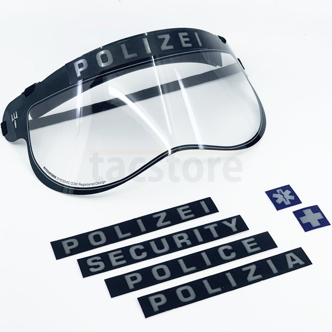 Stay safe and stylish with the Pitchfork POLIZIA Reflective Face Shield Sticker in Black. Reflective front and adhesive back for easy application. Dimensions: 135 x 18mm.