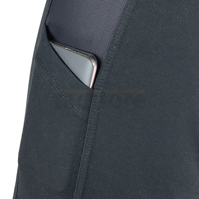 On the sides and under the arms, it has a light, soft and breathable mesh, which provides the necessary cooling in hot situations. Also on the sides pouches can be found for a smartphone or other flat objects. Cable bushings allow concealed routing of headphones or other cables. The integrated pockets on the upper arms with YKK zippers also have cable entries on both sides. Velcro on the arms and on the chest makes it possible to apply name patches, rank insignia and others.